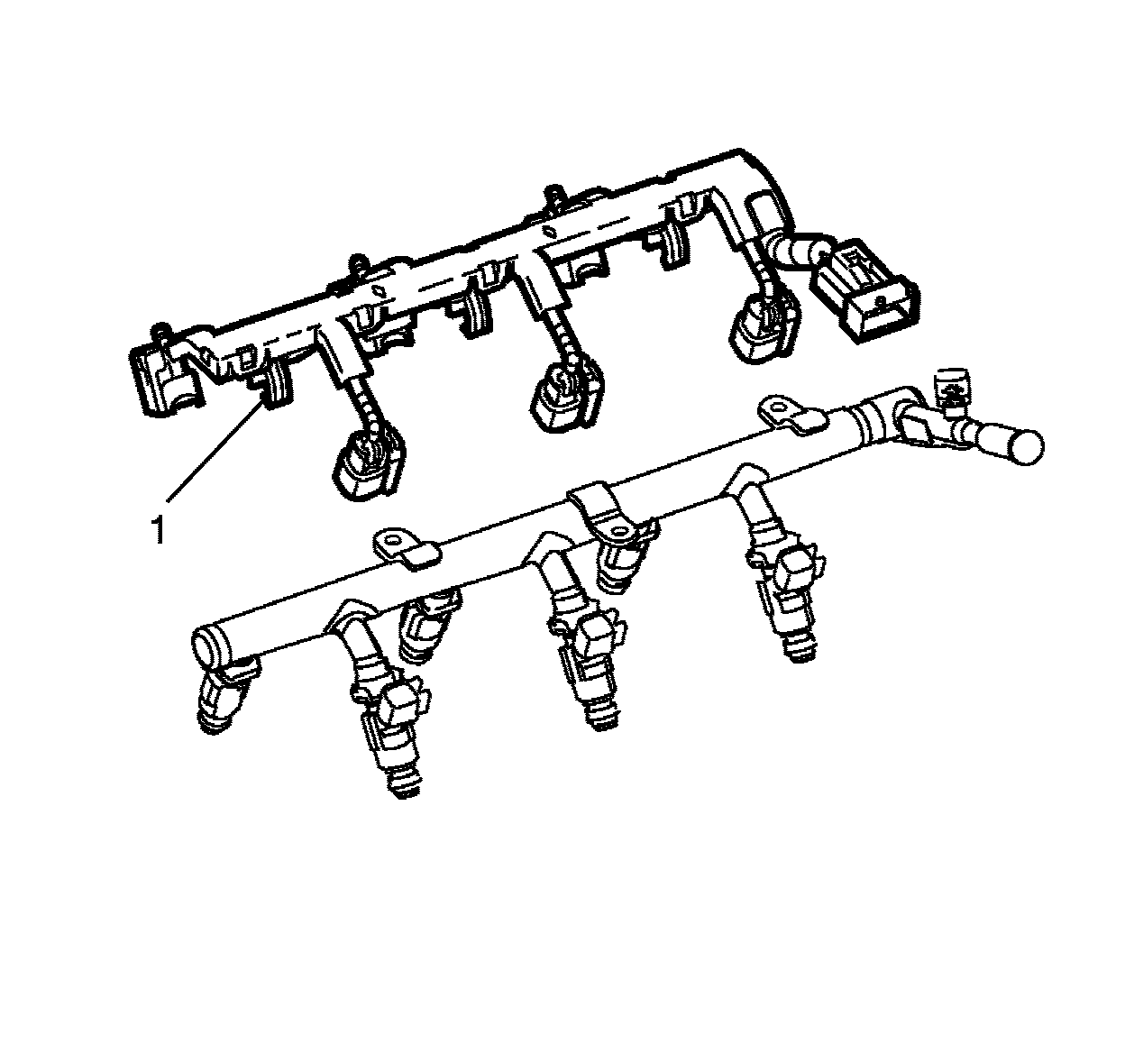 1. Remove the fuel injector wiring harness (1).