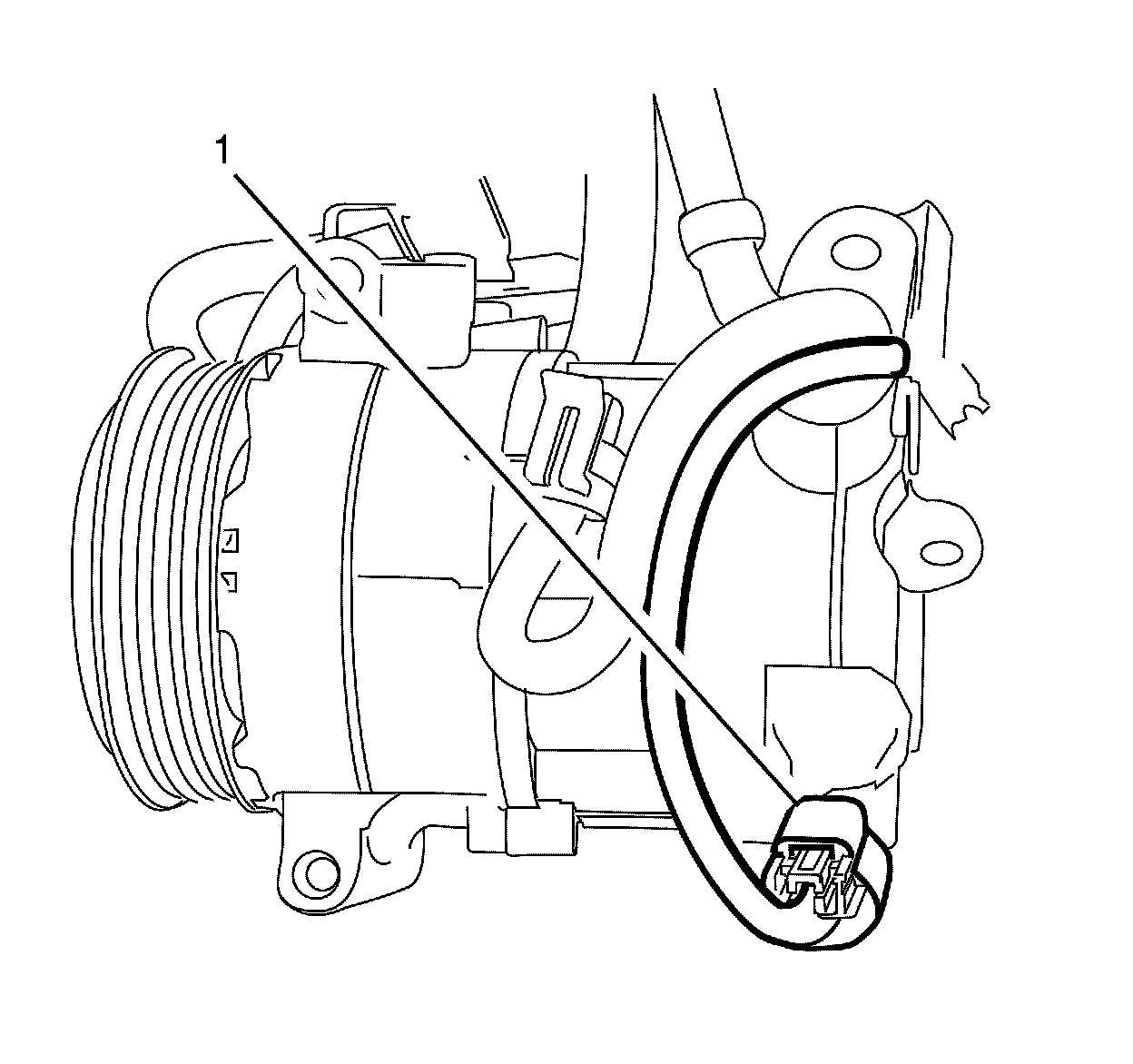 5. Disconnect the compressor electrical connector (1).