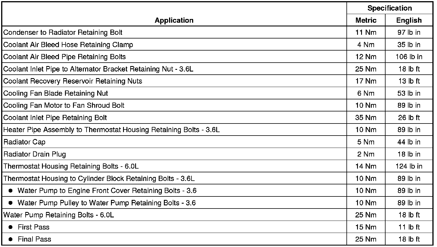 Fastener Tightening Specifications
