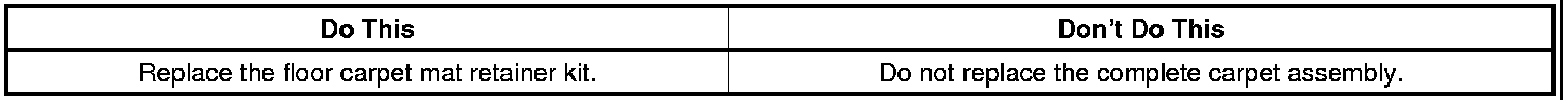 The graphics below show a repair of the carpet mat retainer at the outboard location. The steps would be the same when repairing the inboard retainer.