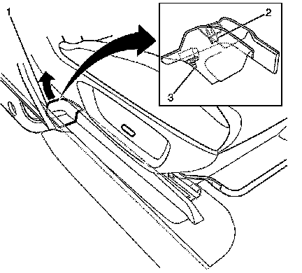 1. Grasp the front lower area of the side trim panel (2) and carefully pull to disengage the retaining clips.
