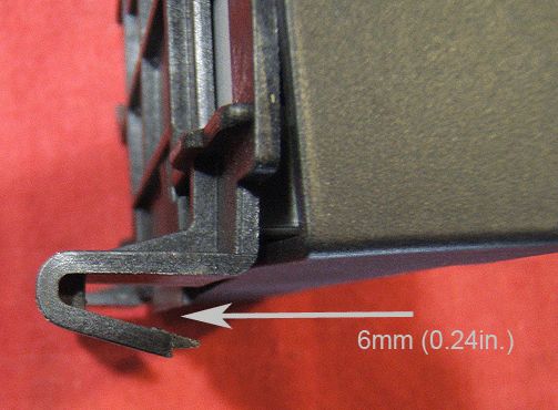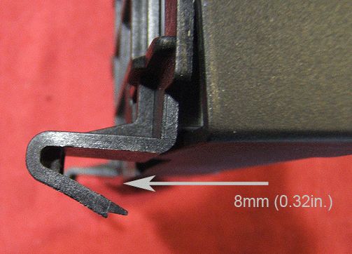 3. Examine the retaining clips. The plastic retainers are cast with the widest part of the clip open 6 mm (0.24 in).