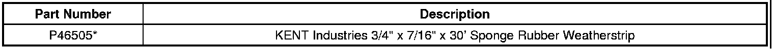 Adhesive-backed sponge rubber weatherstrip may be ordered from Kent Industries at 1-800-654-6333.
