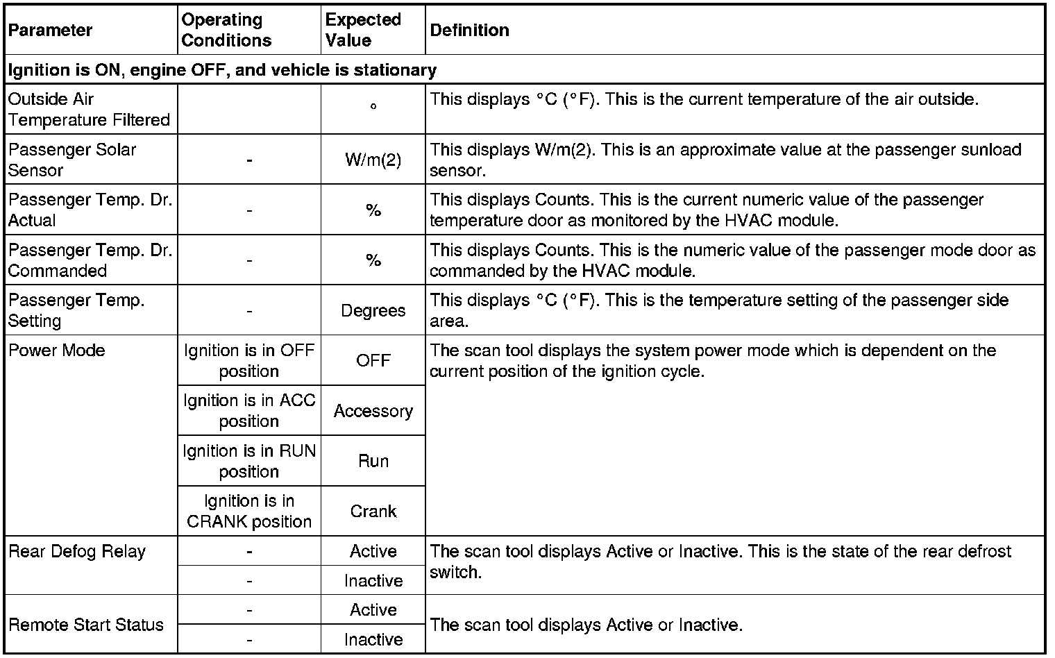 Heating Ventilation Air Conditioning Scan Tool Data Parameters