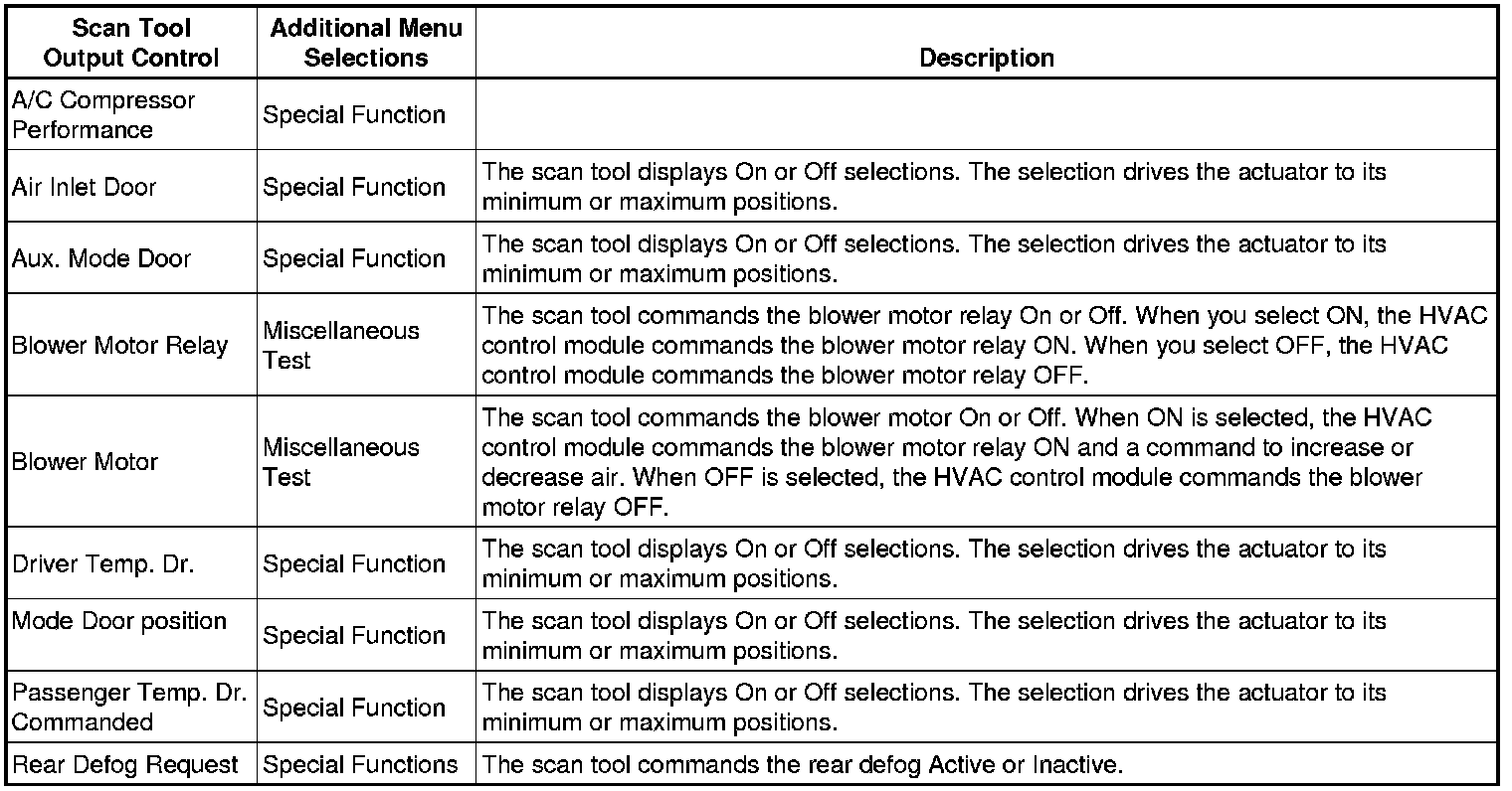 Heating Ventilation Air Conditioning Control Module Scan Tool Output Controls