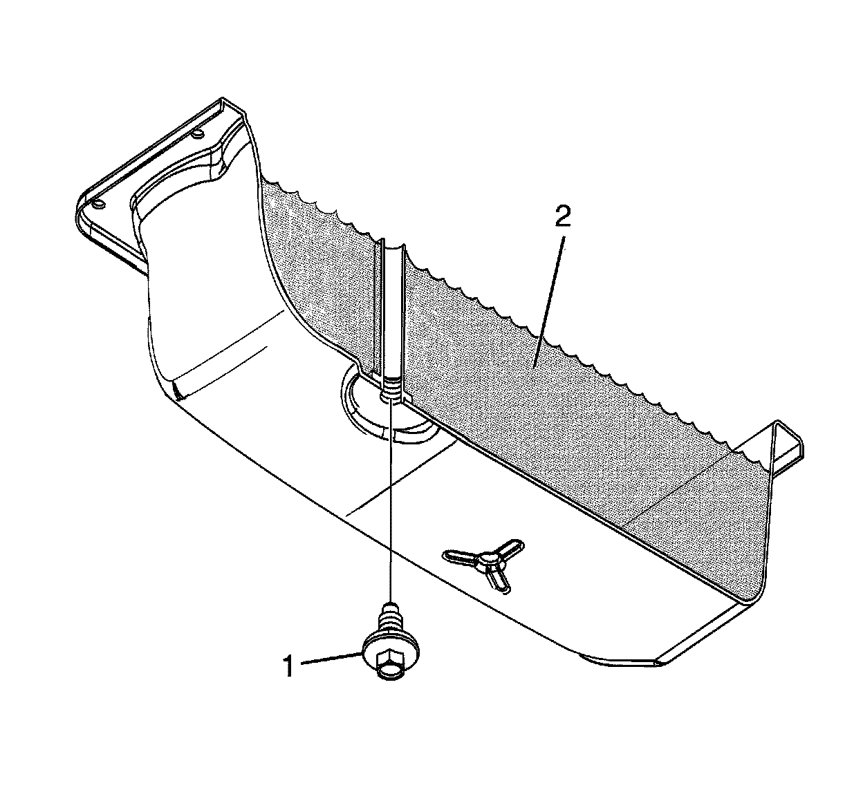 6. Remove the transmission fluid level check plug (1) from the transmission fluid pan.