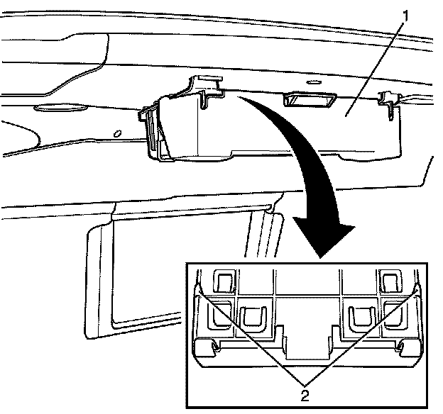 1. Unclip the VCIM fascia cover (1) at the retaining clips (2) and remove the VCIM fascia cover (1) from the vehicle.