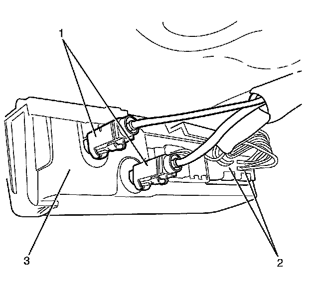 2. Disconnect the antenna connectors (1) and the harness connectors (2) from the VCIM (3).