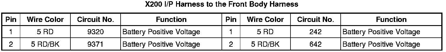 X200 I/P Harness to the Front Body Harness
