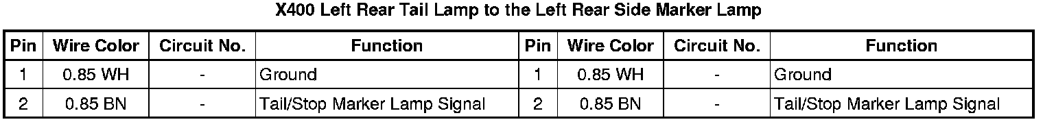X400 Left Rear Tail Lamp to the Left Rear Side Marker Lamp