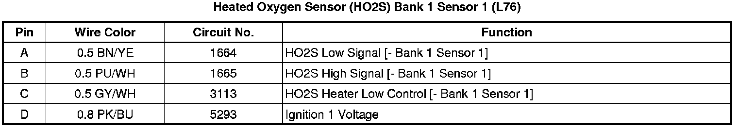 Heated Oxygen Sensor (HO2S) Bank 1 Sensor 1 (L76)