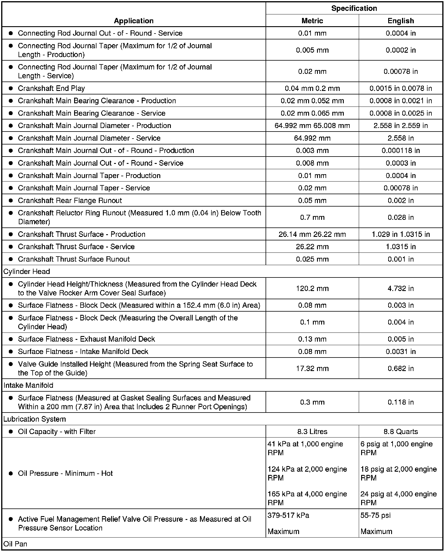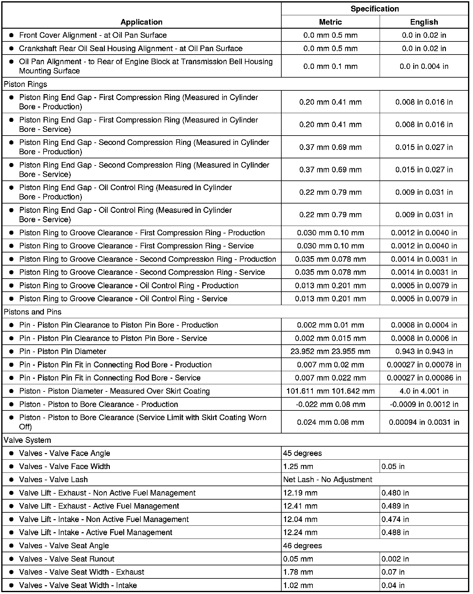Engine Mechanical Specifications (L76)