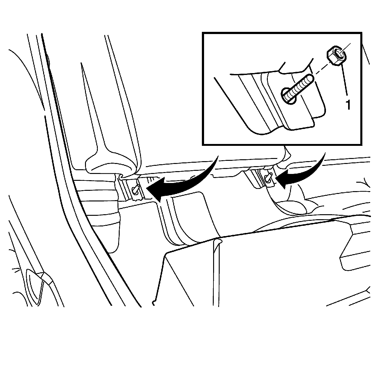 1. Remove the rear seat cushion. Refer to Rear Seat Cushion Replacement (Rear Seat Cushion Replacement).
