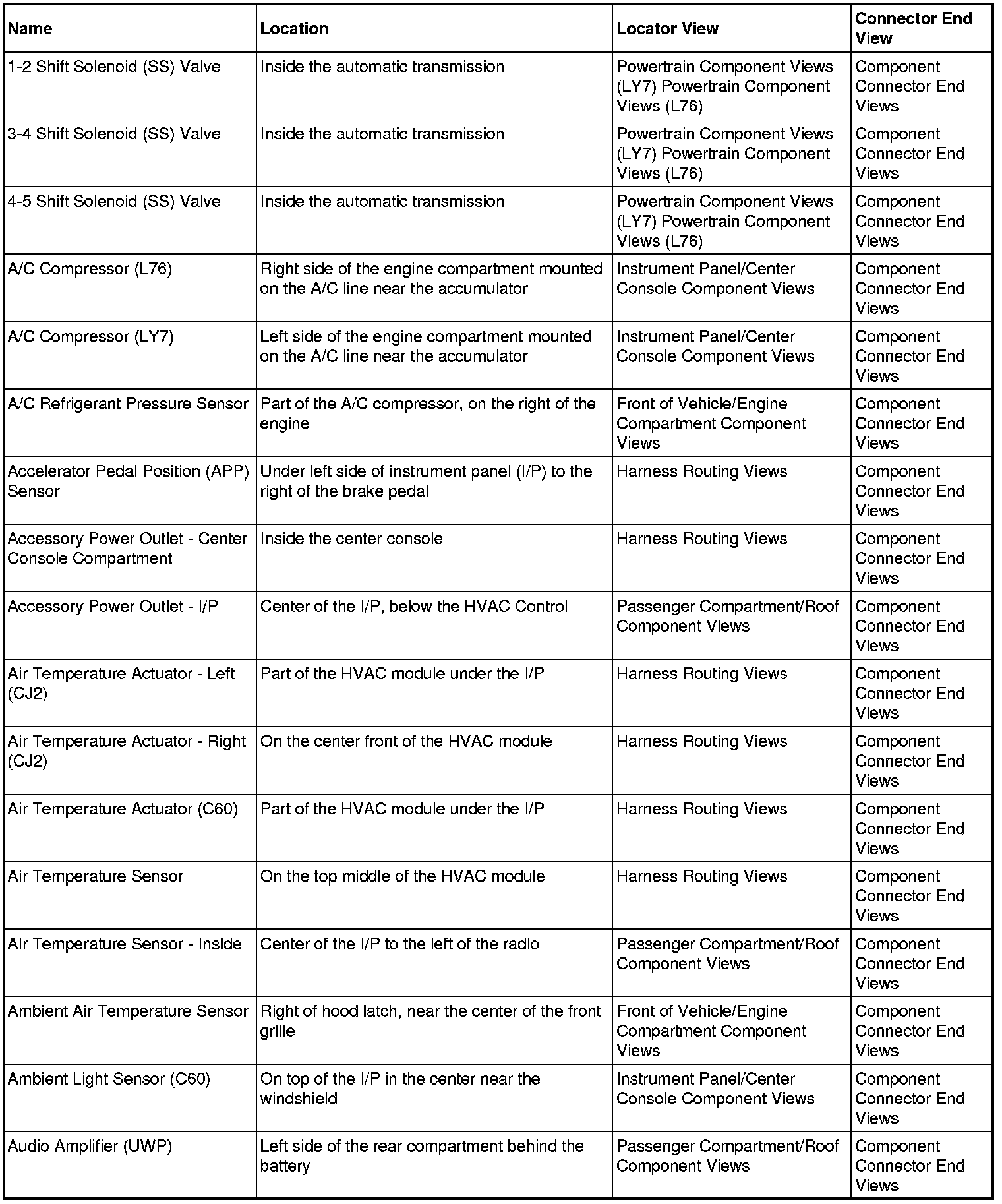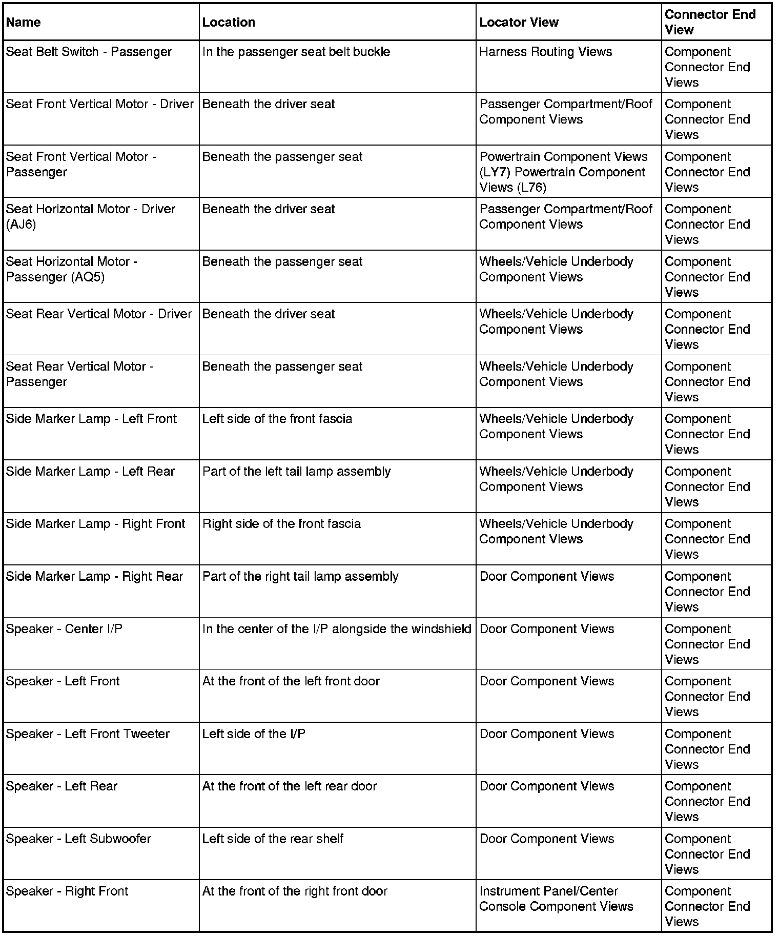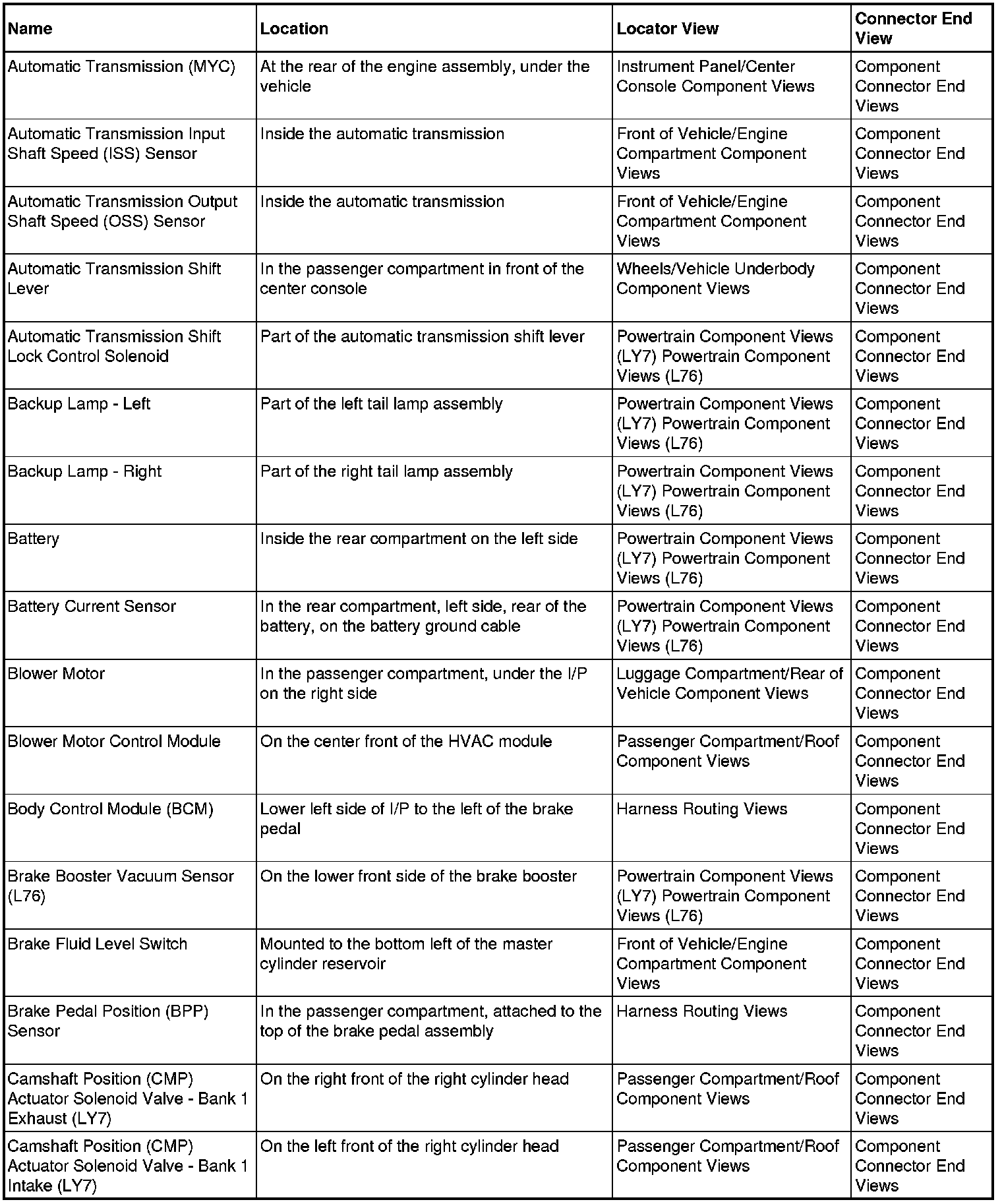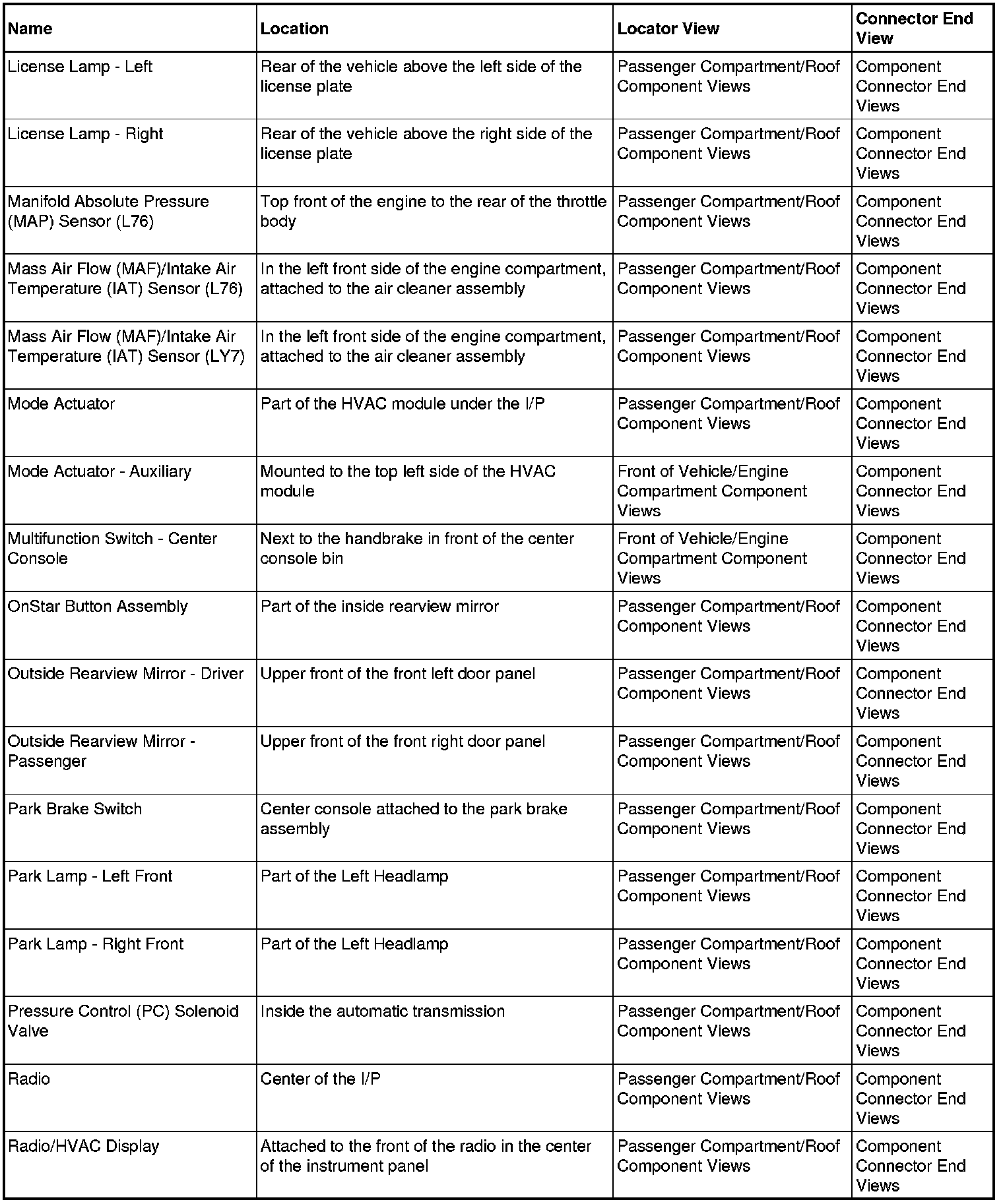 Master Electrical Component List