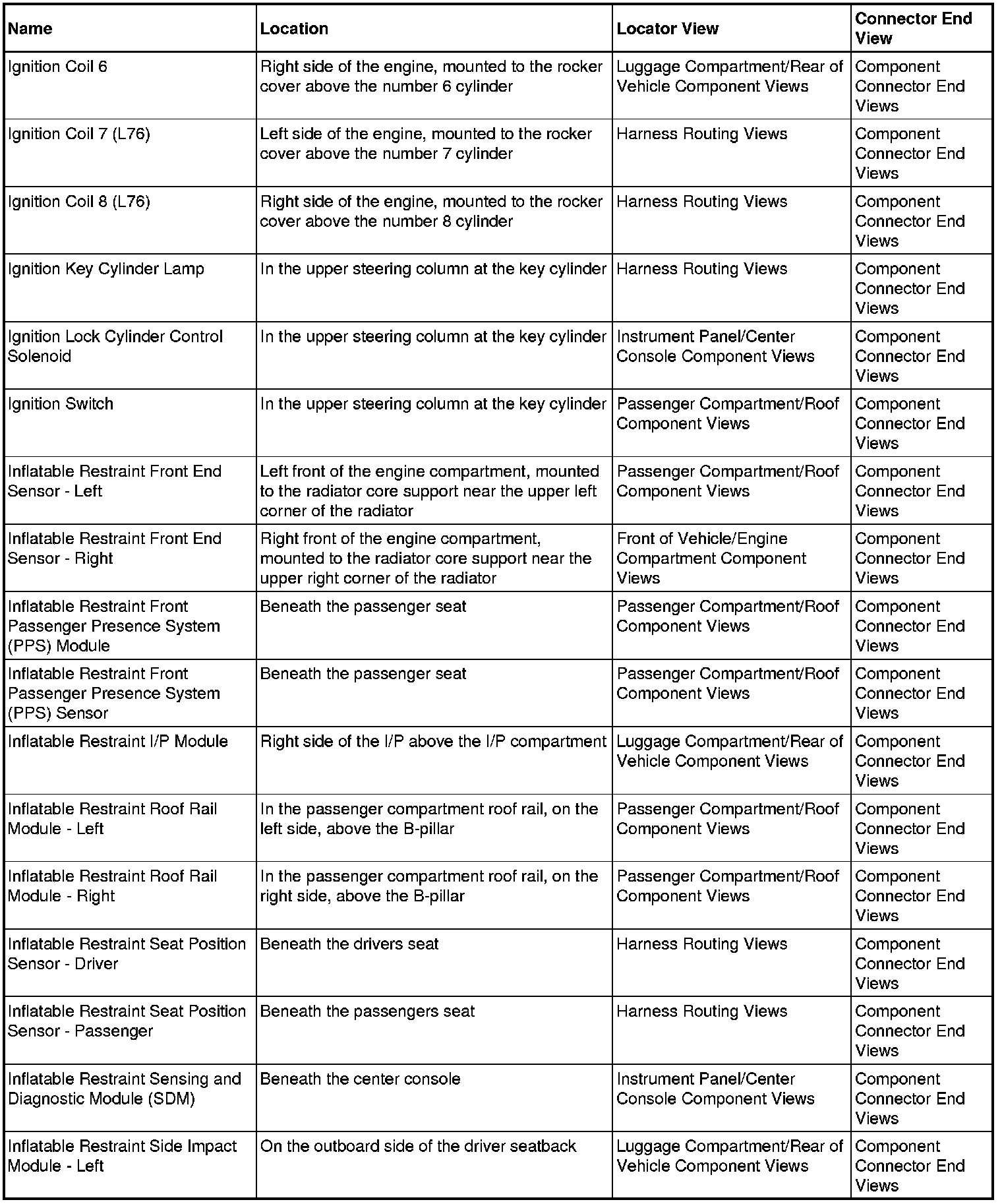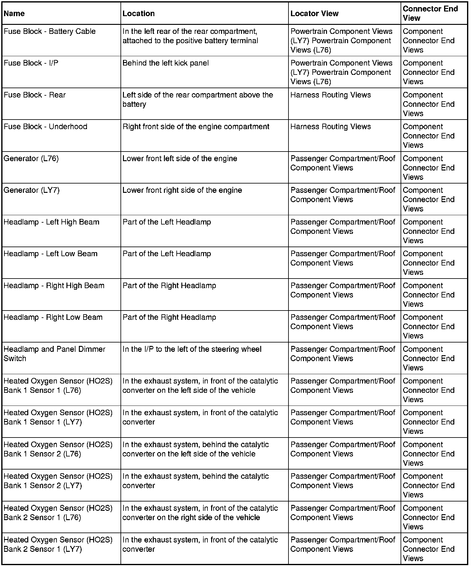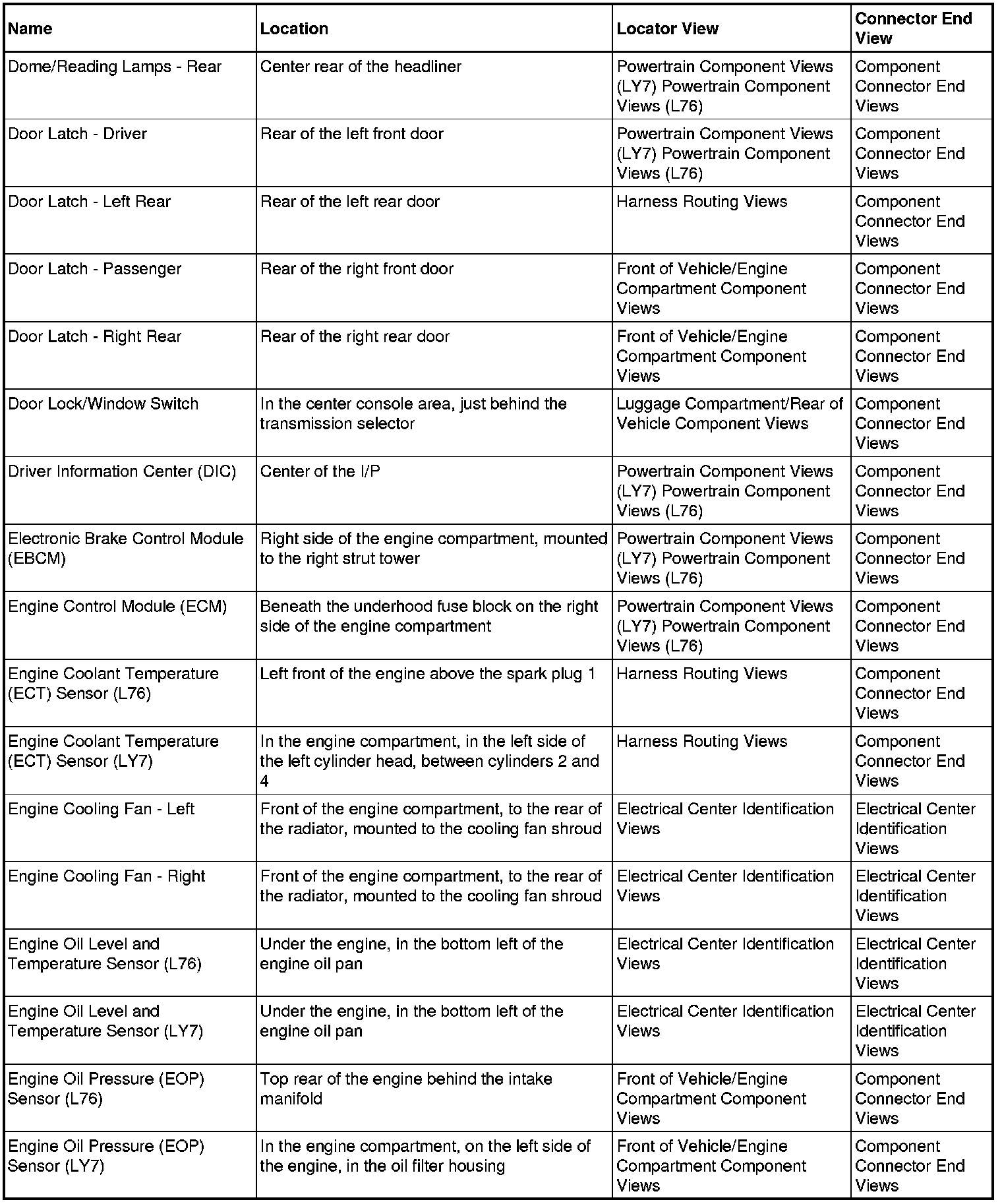 Master Electrical Component List