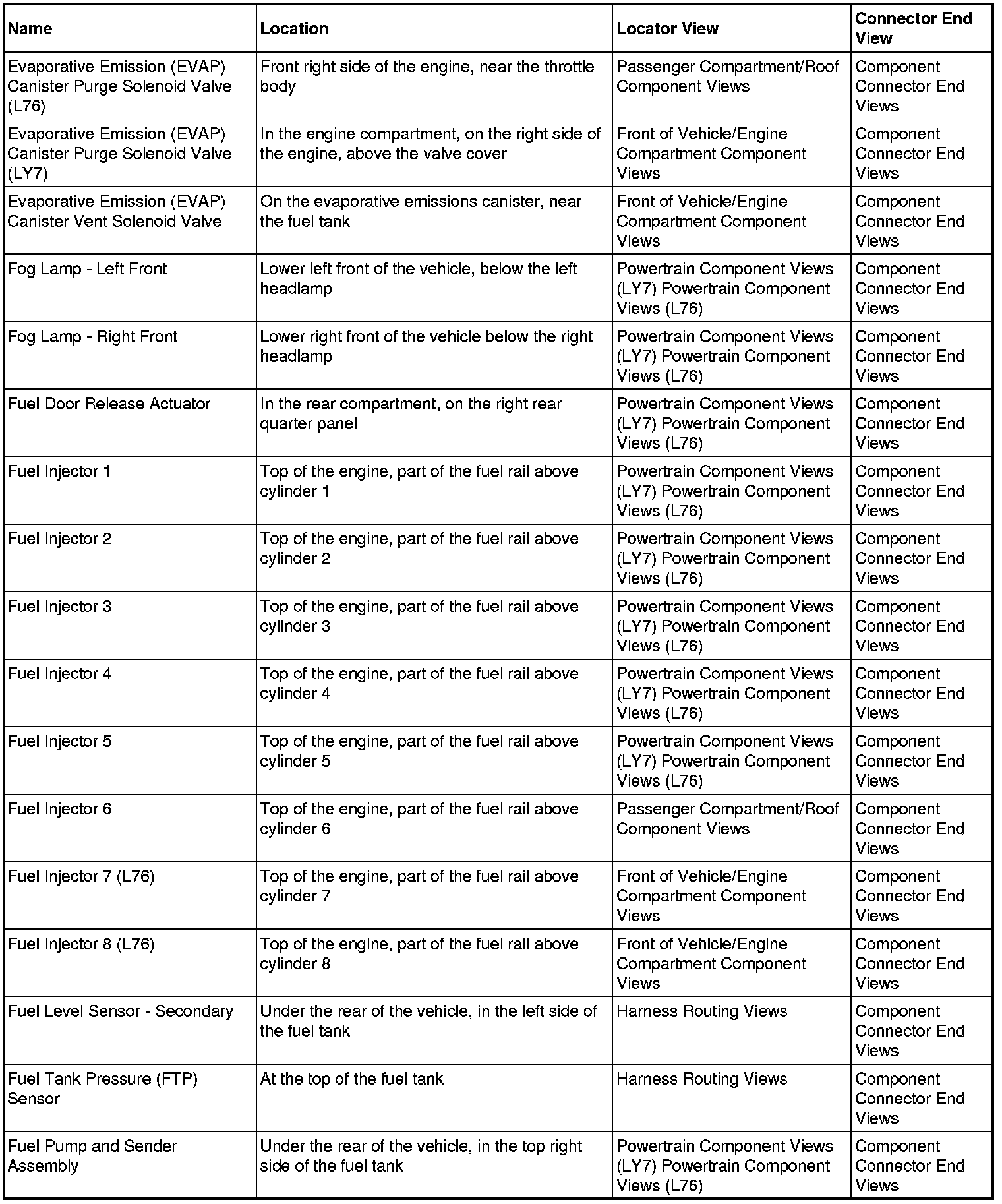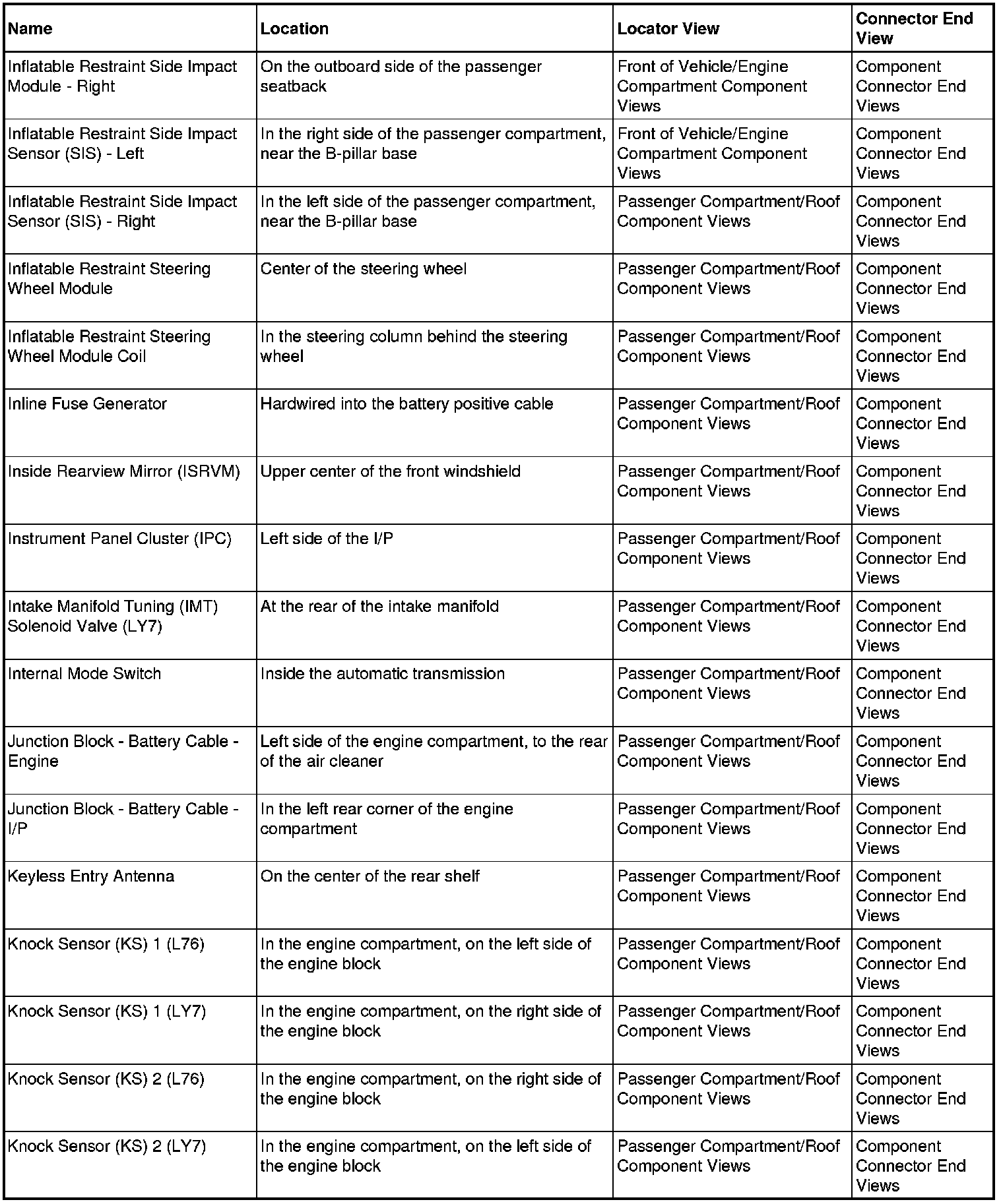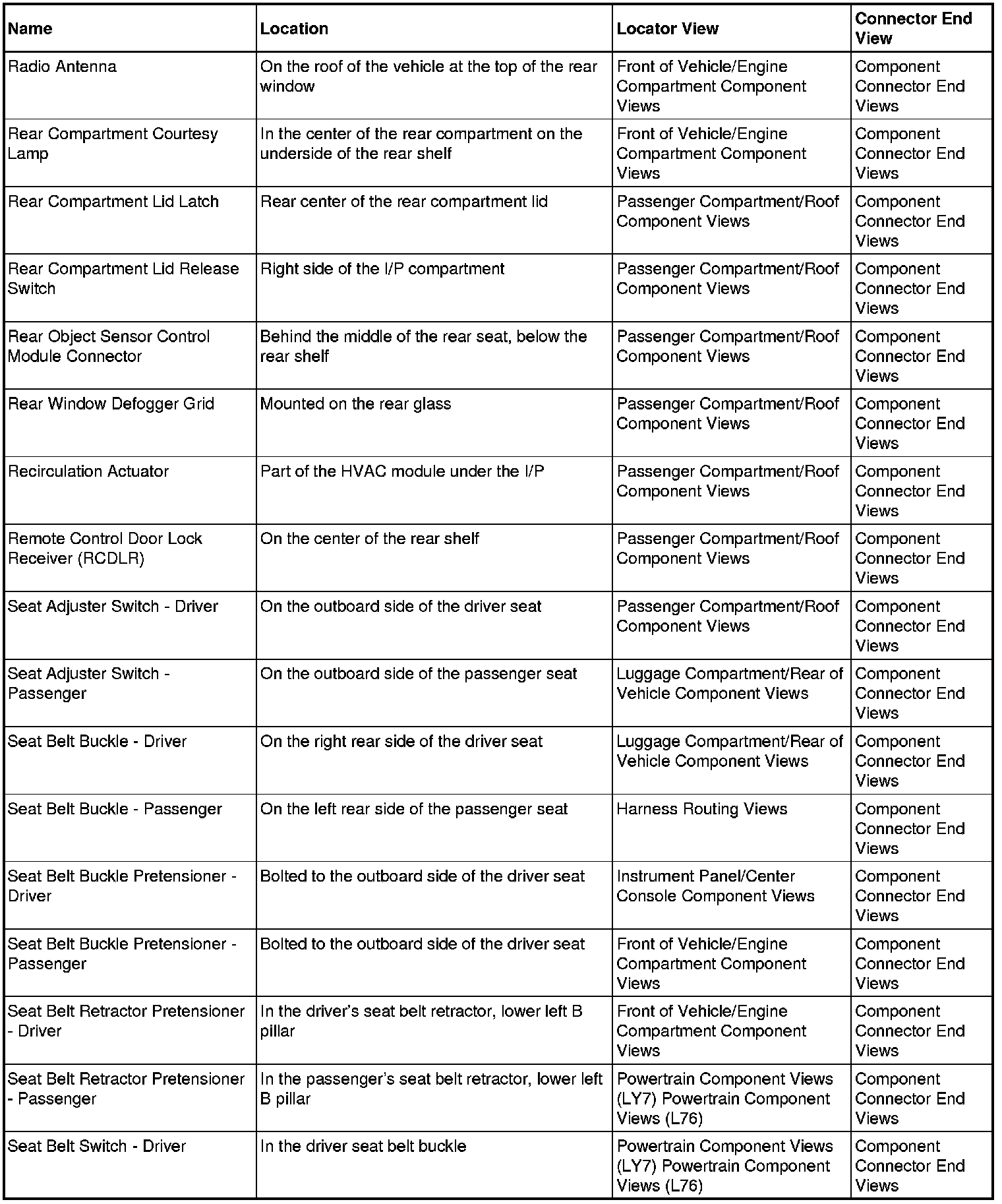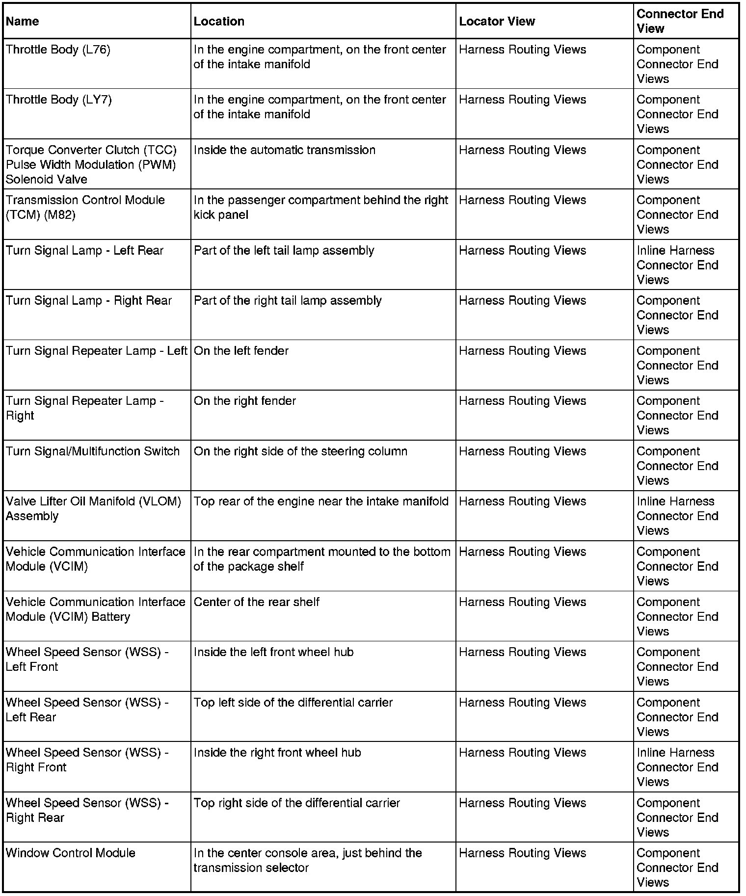 Master Electrical Component List