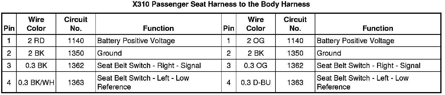 X310 Passenger Seat Harness to the Body Harness