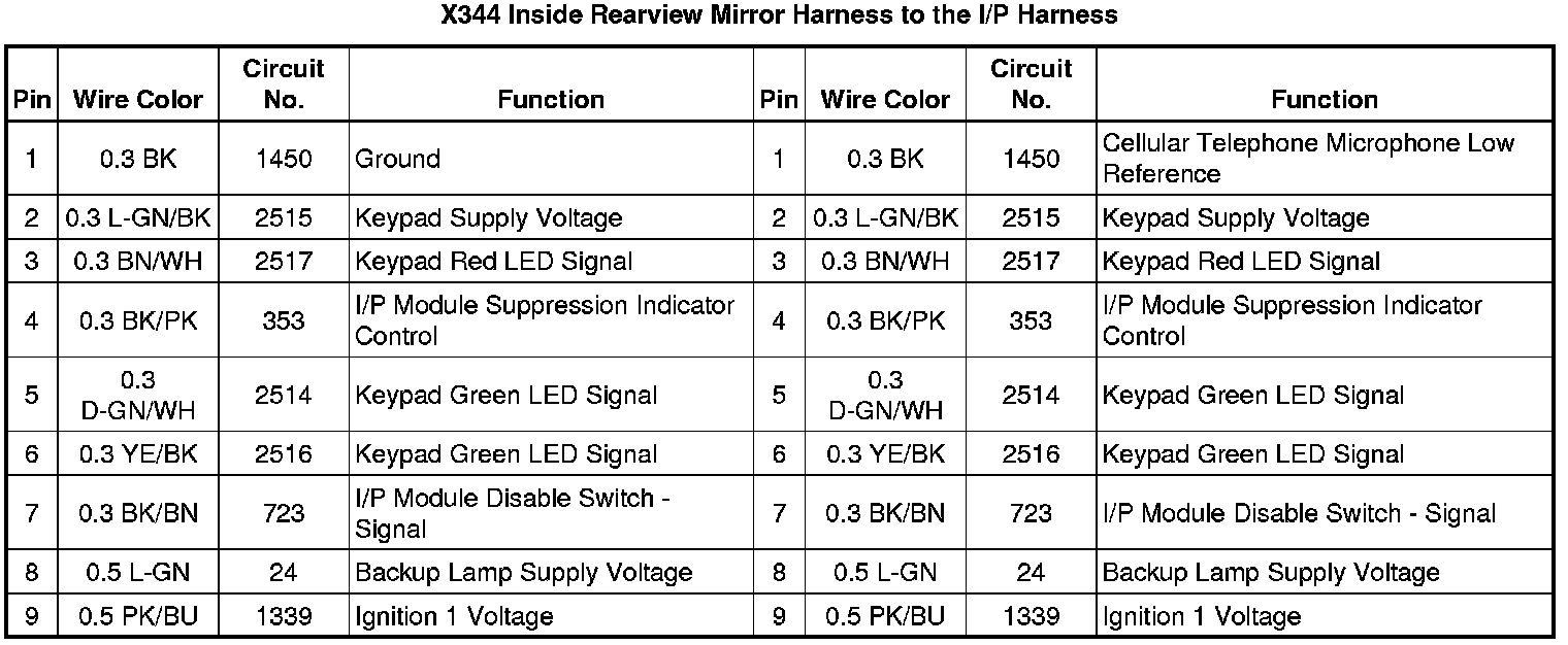 X344 Inside Rearview Mirror Harness to the I/P Harness