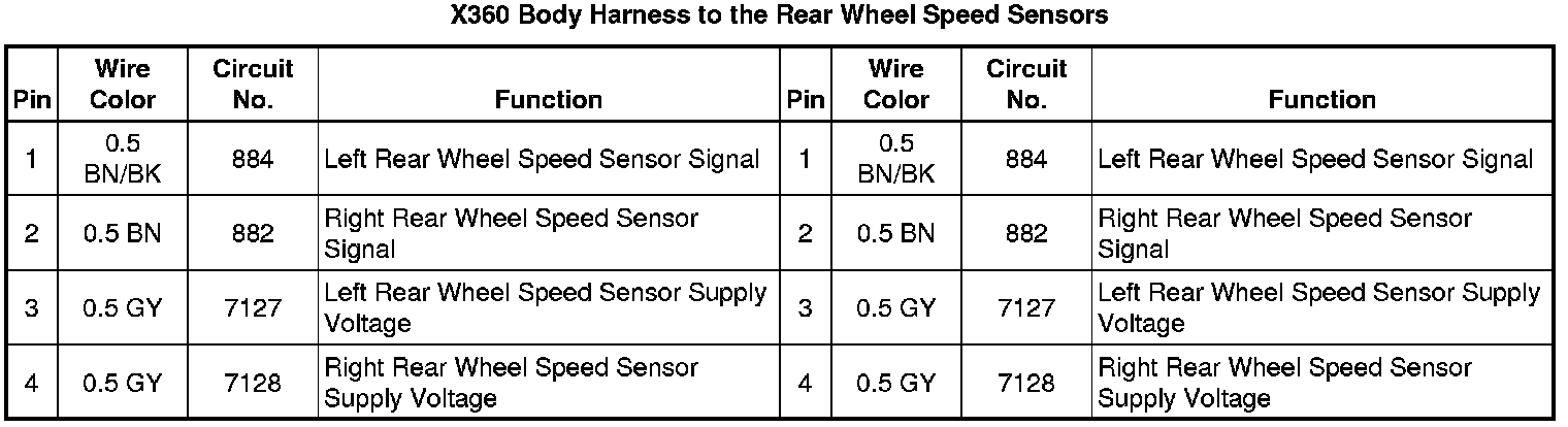 X360 Body Harness to the Rear Wheel Speed Sensors
