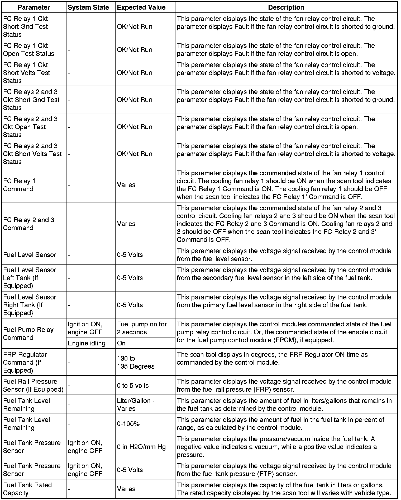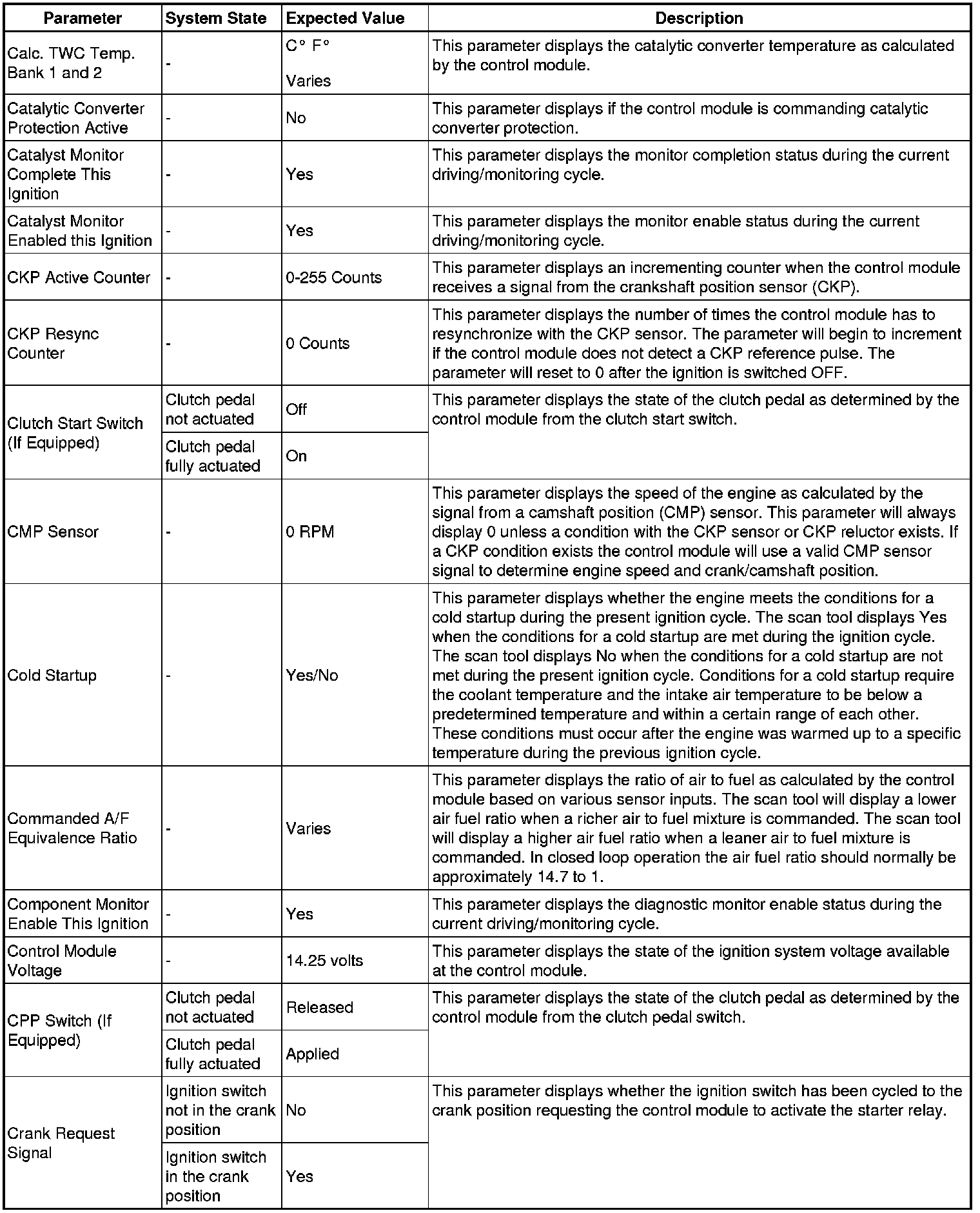 The Engine Control Module Scan Tool Data List contains all engine-related parameters that are available on the scan tool. The list is arranged in alphabetical order. A given parameter may appear in any one of the data lists, and in some cases may appear more than once, or in more than one data list in order to group certain related parameters together.