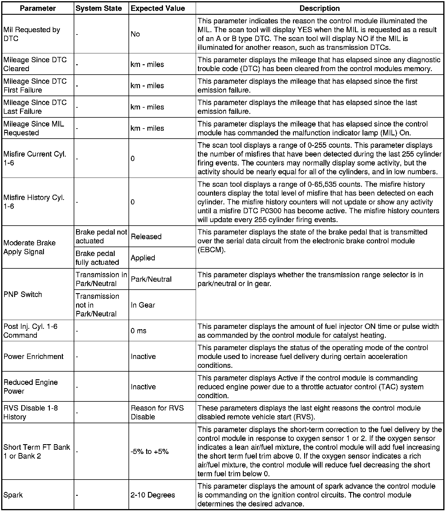 Only the parameters listed below are referenced in this service manual for use in diagnosis.