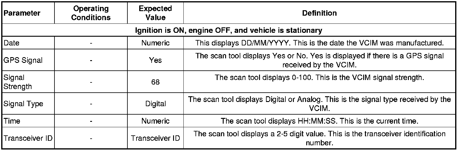 Communication Interface Module Scan Tool Data Parameters