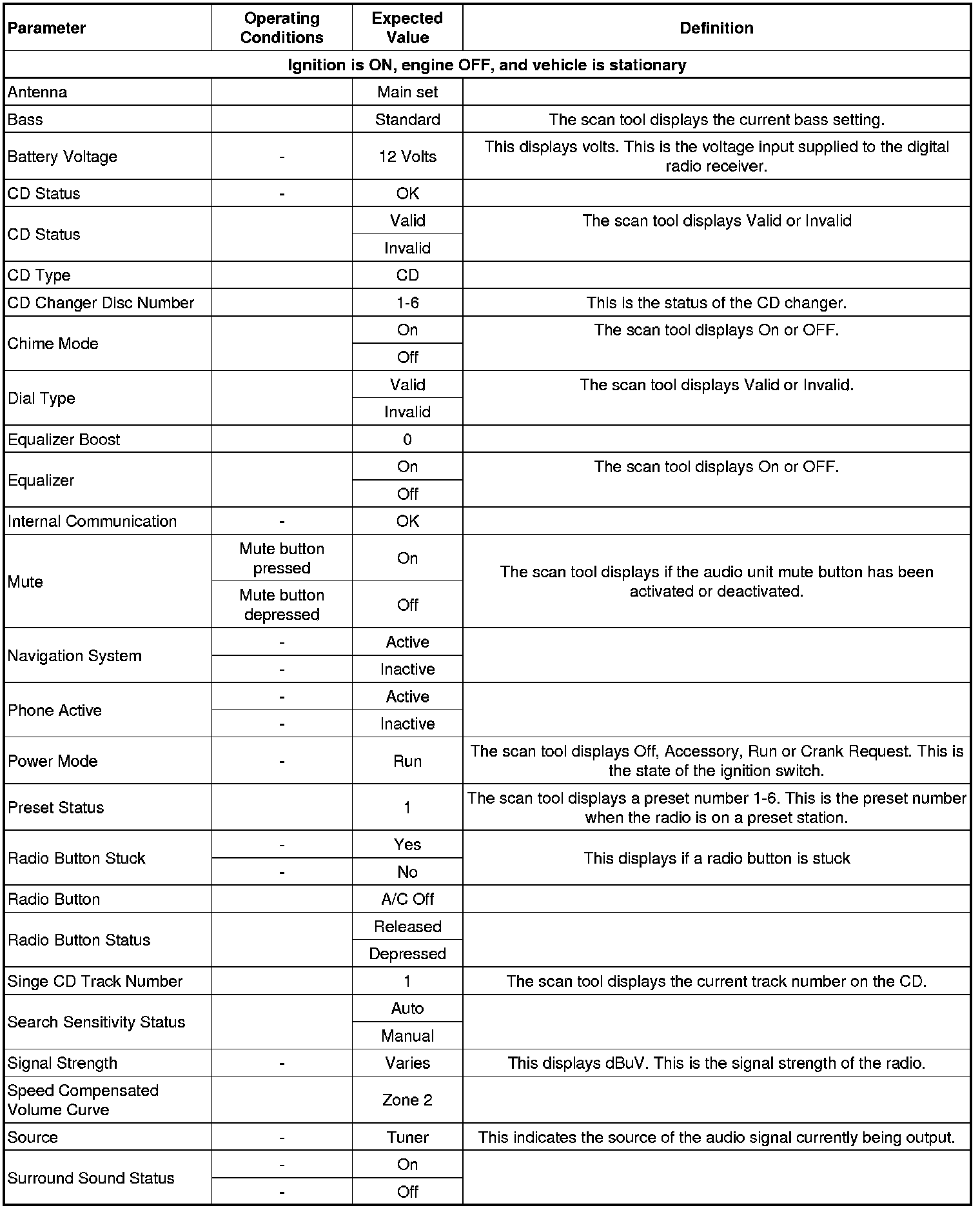 Radio Scan Tool Data Parameters