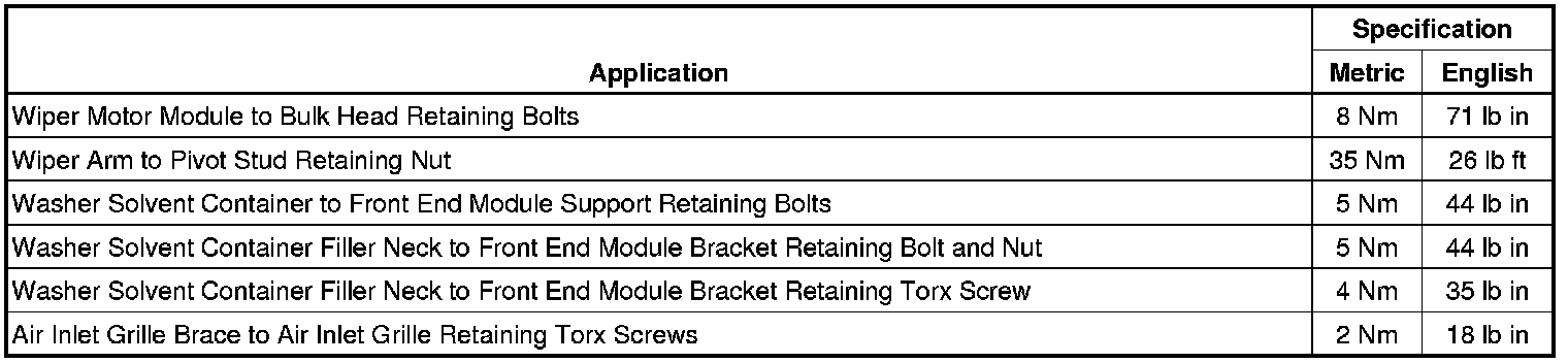 Wiper and Washer Systems: Specifications