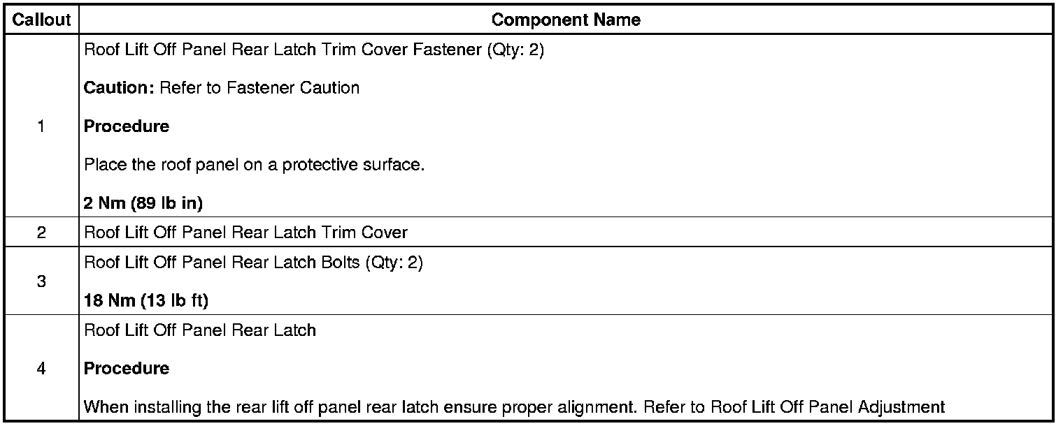 Roof Lift Off Panel/Window Rear Latch Replacement