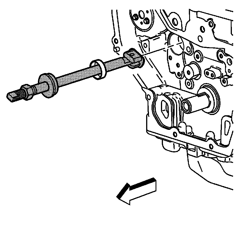 Caution: Proper centering of the tool is required on the balance shaft bushing. If the tool is not properly centered then damage to the bearing bore and block will occur.
