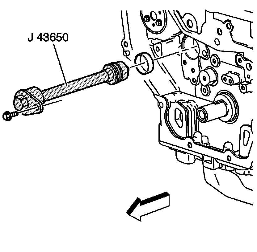 1. Install the balance shaft bushing using the J 43650 , (right side shown, left side similar).