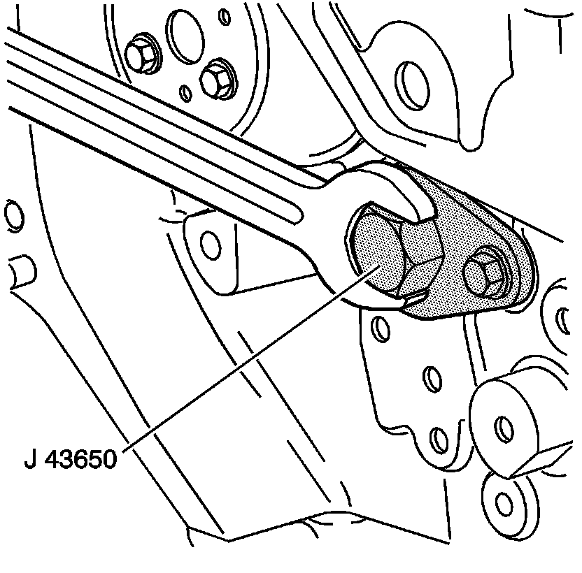 3. When the J 43650 is fully seated in the engine block, remove it with a wrench.