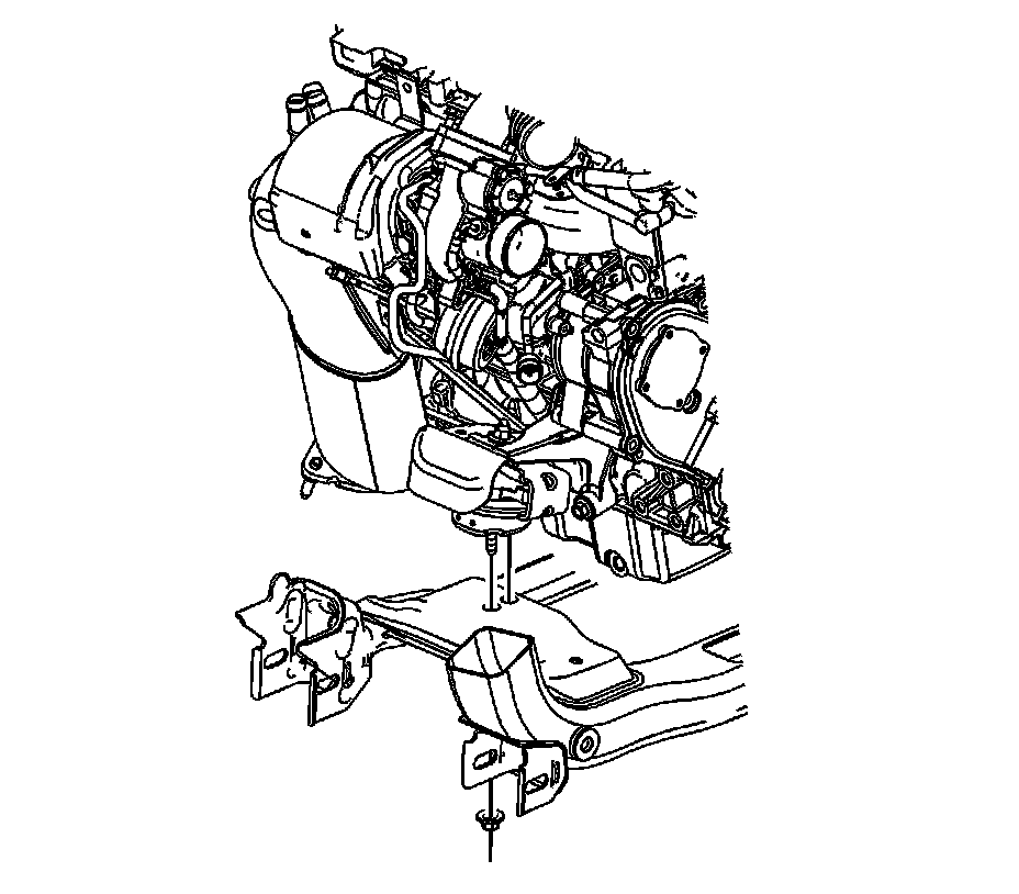 9. Tighten the driver side engine mount to frame lower nut.