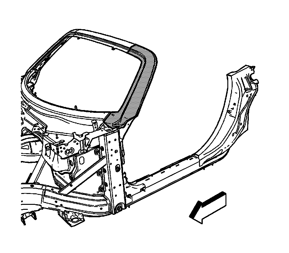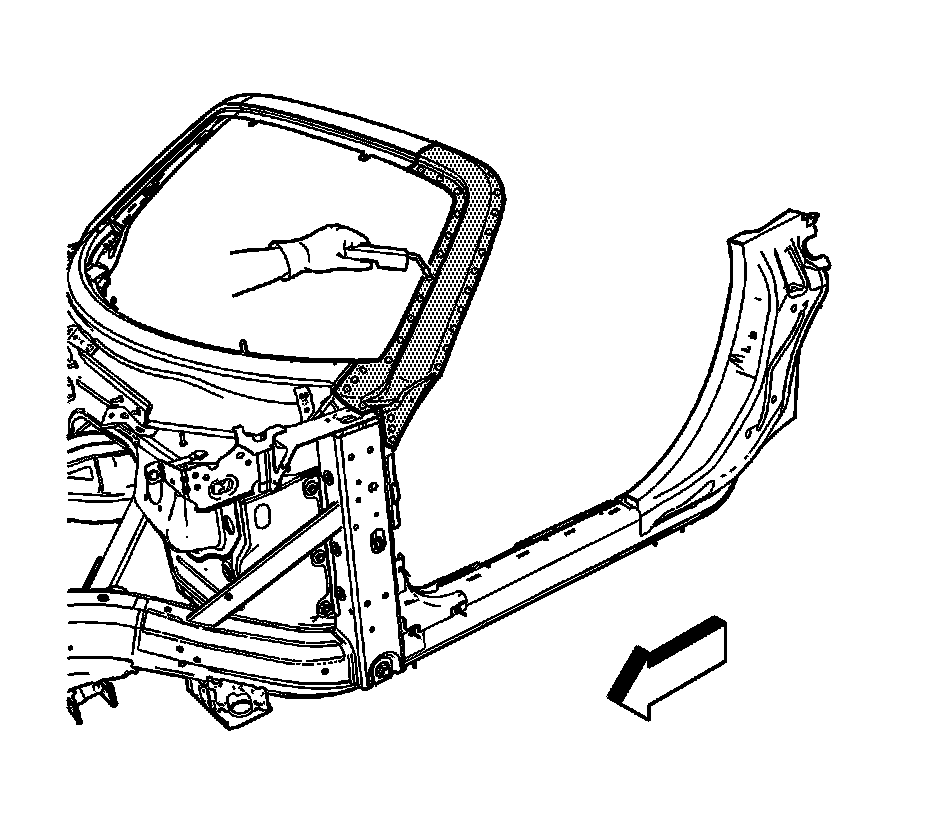 4. Position the windshield frame side panel to the vehicle. Use 3-dimensional measuring equipment to ensure fit. Clamp the panel into place.