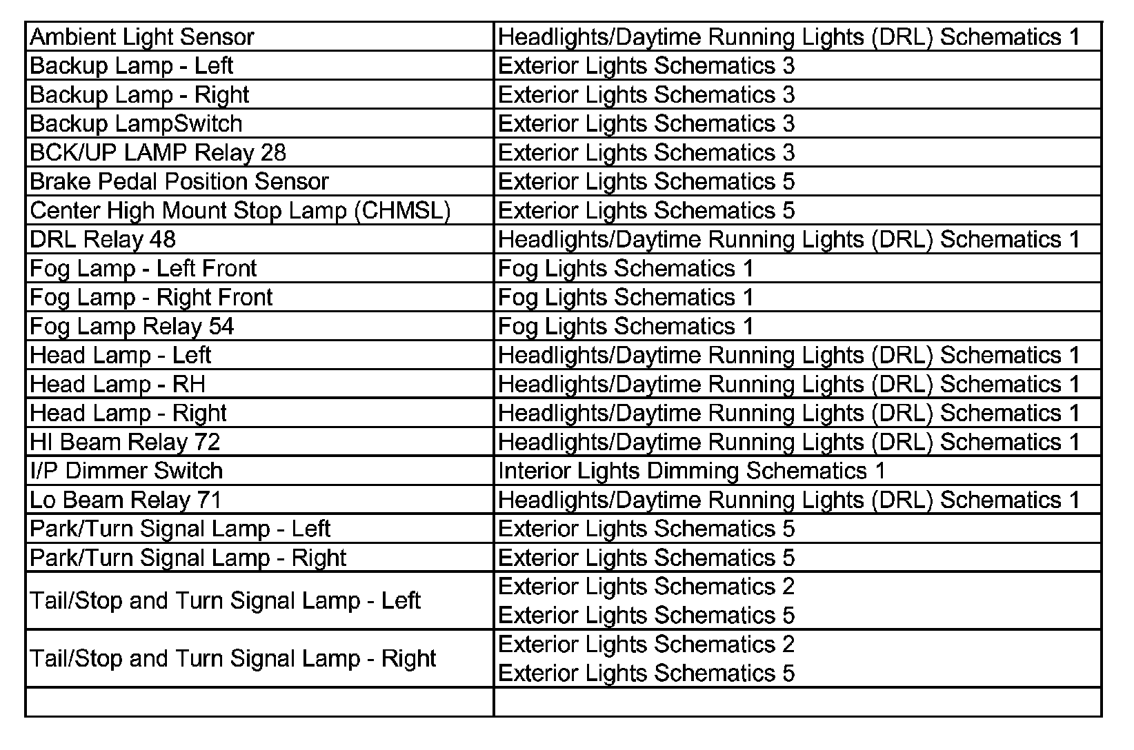 Wiring Schematic Index
