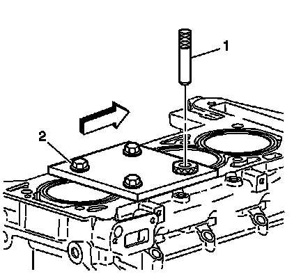 11. Remove the fixture plate (1), bushing (2), and bolts.