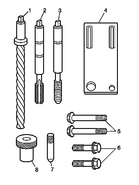Note: The use of a cutting type fluid GM P/N 1052864 (Canadian P/N 992881), WD 40(R), or equivalent, is recommended when performing the drilling and tapping procedures.