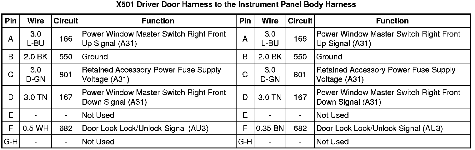 X501 Driver Door Harness to the Instrument Panel Body Harness
