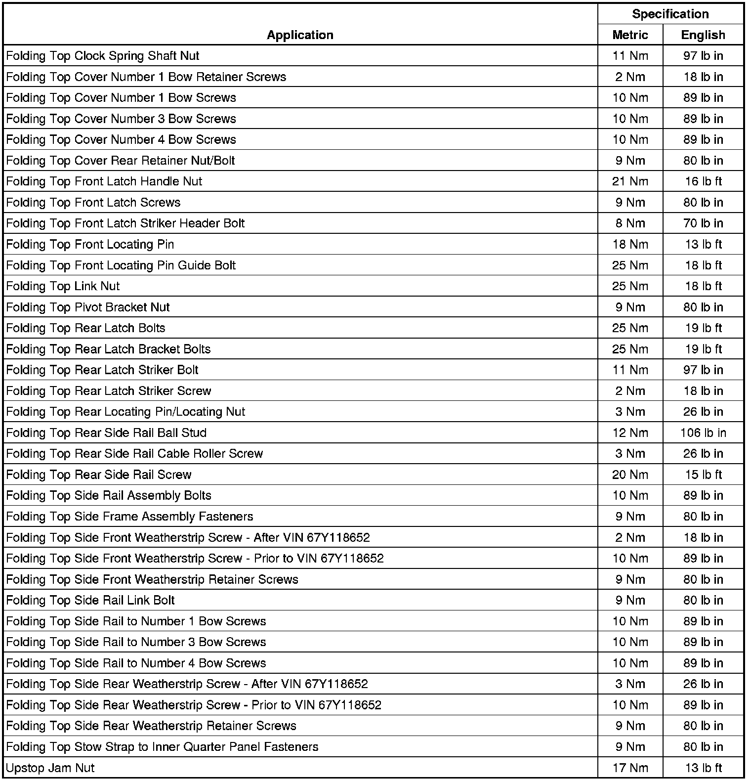 Fastener Tightening Specifications