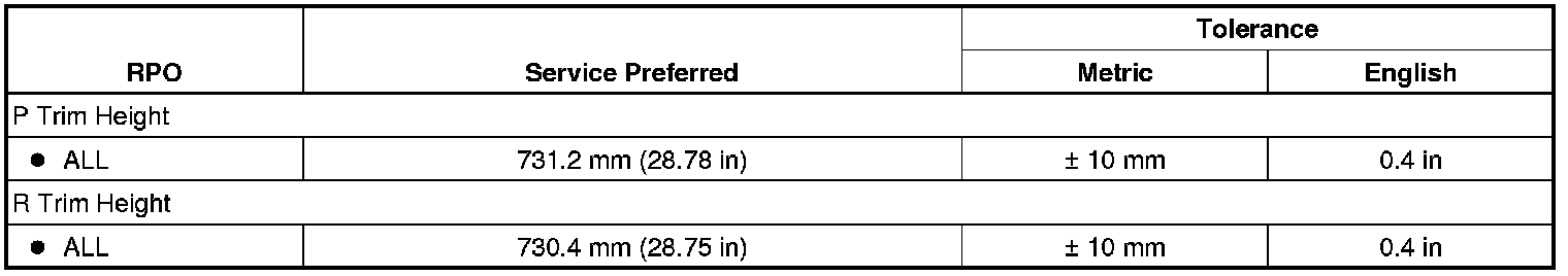Trim Height Specifications