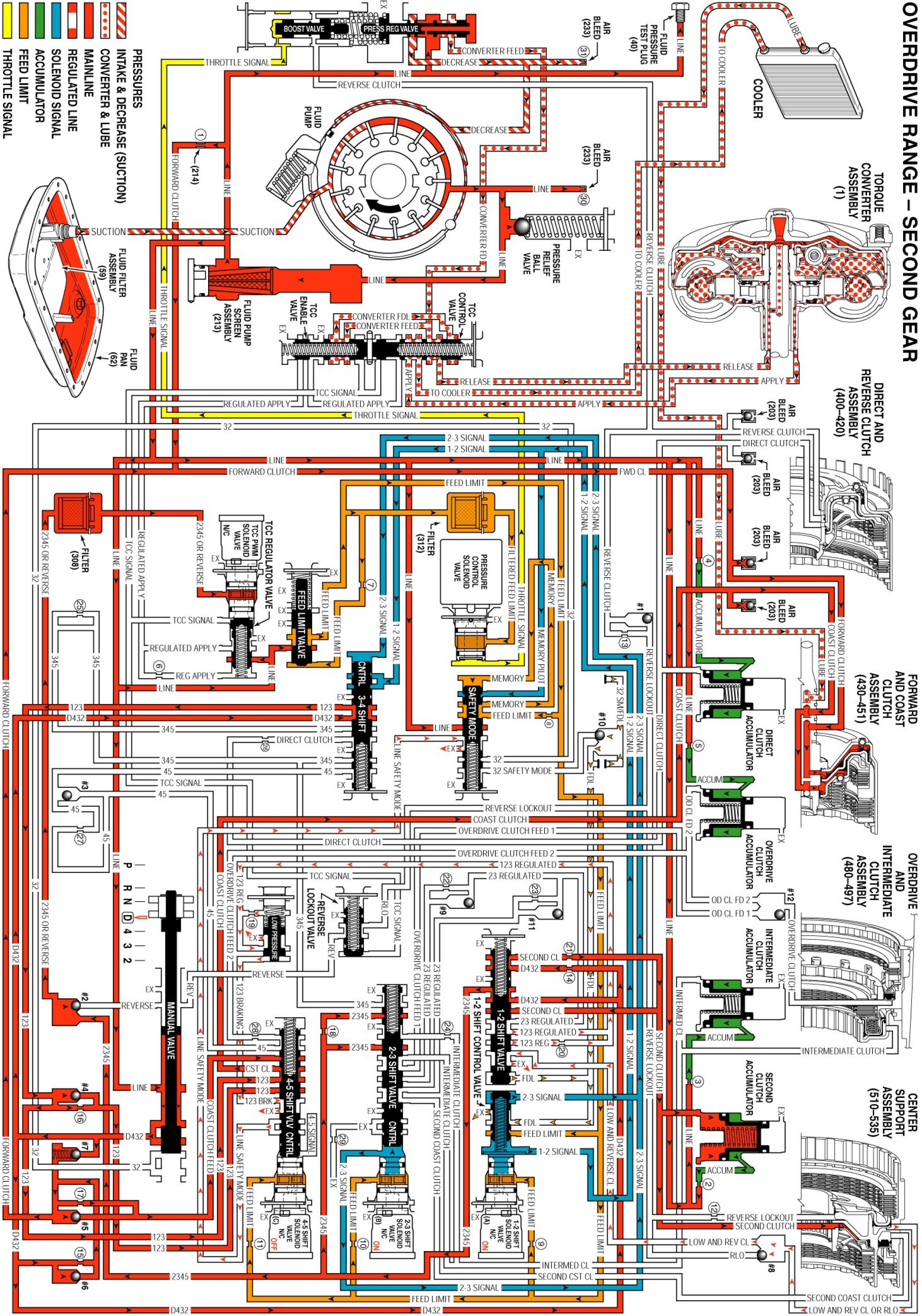 - Second clutch fluid is directed to the second clutch piston to apply the second clutch plates and achieve Second gear.