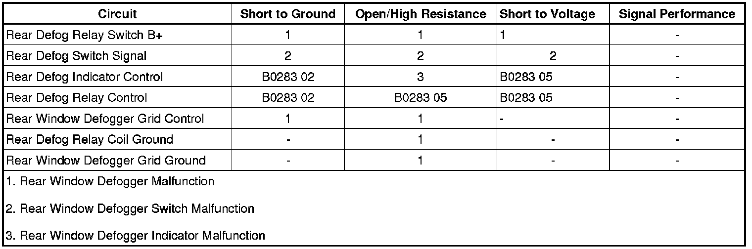 • If the rear window defogger grid does not activate, test the control circuit for an open/high resistance. If the circuit tests normal, test or replace the rear window defogger grid.