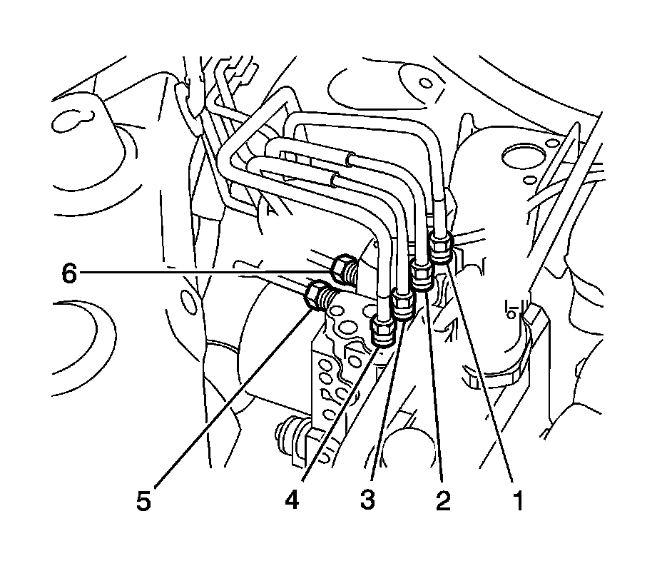 8. Mark the brake pipes (1-6) to aid in installation.