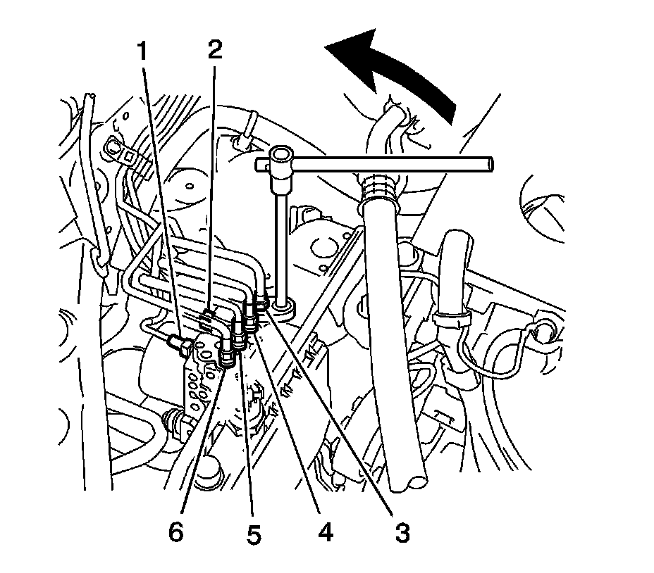 10. Remove the brake pipes (1-6) from the brake modulator assembly.