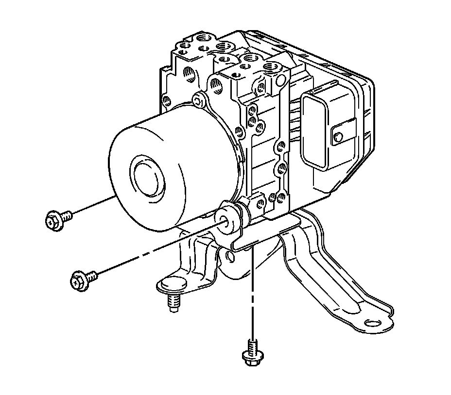 14. Remove the 3 bolts and the brake pressure modulator assembly from the bracket.