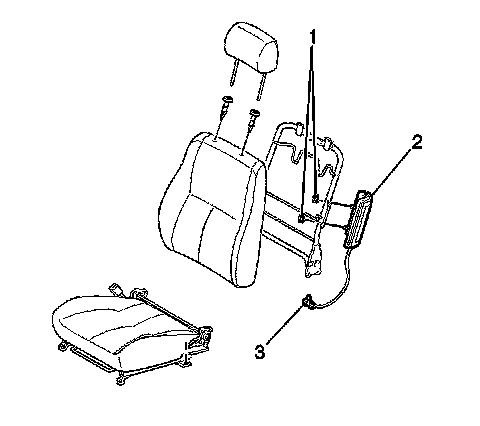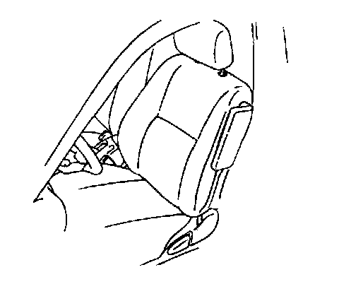 2. Remove the front seat back cover. Refer to Driver or Passenger Seat Back Cushion Cover and Pad Replacement (With Seat Back Board) (Driver or Passenger Seat Back Cushion Cover and Pad Replacement (With Seat Back Board))Driver or Passenger Seat Back Cushion Cover and Pad Replacement (Without Seat Back Board) (Driver or Passenger Seat Back Cushion Cover and Pad Replacement (Without Seat Back Board)).