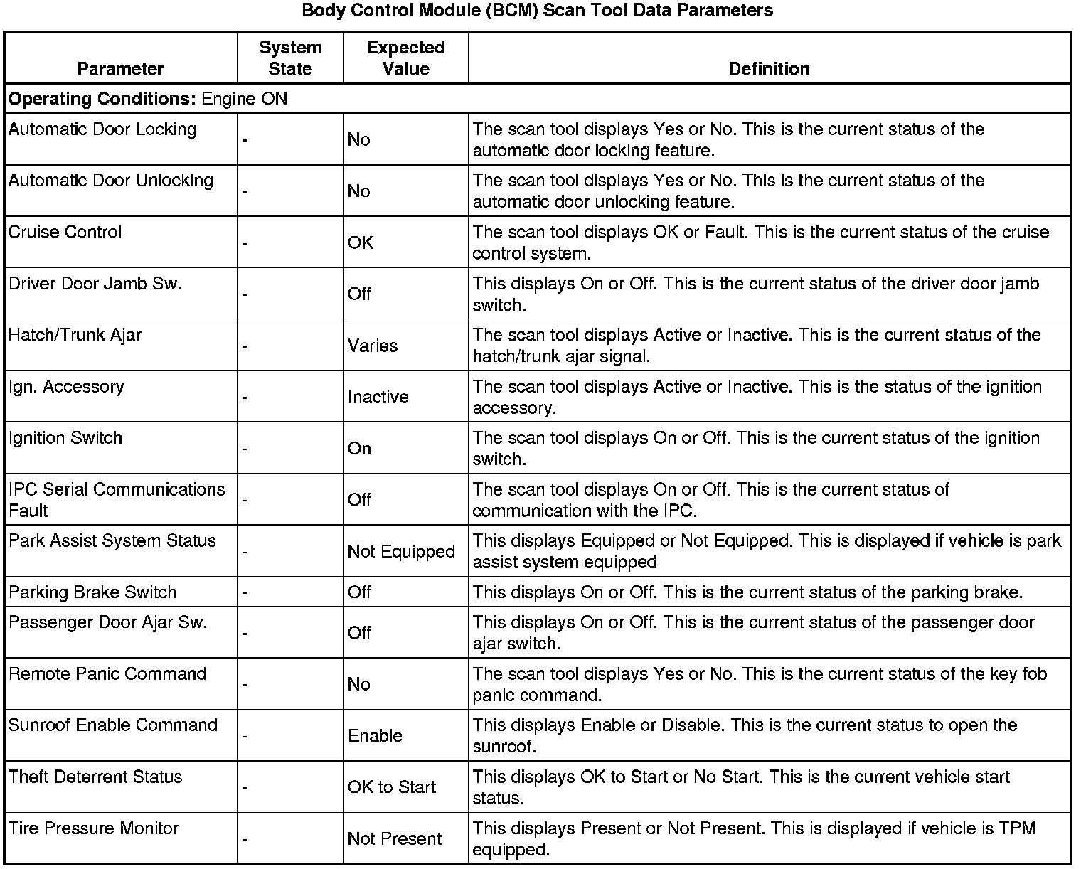 Body Control Module Scan Tool Information