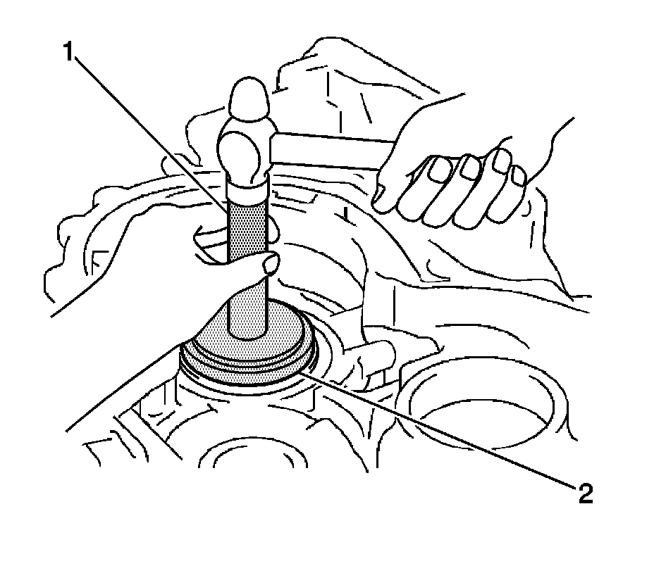 2. Using a suitable tool (1), drive in the front wheel drive shaft seal (2) into the differential housing.