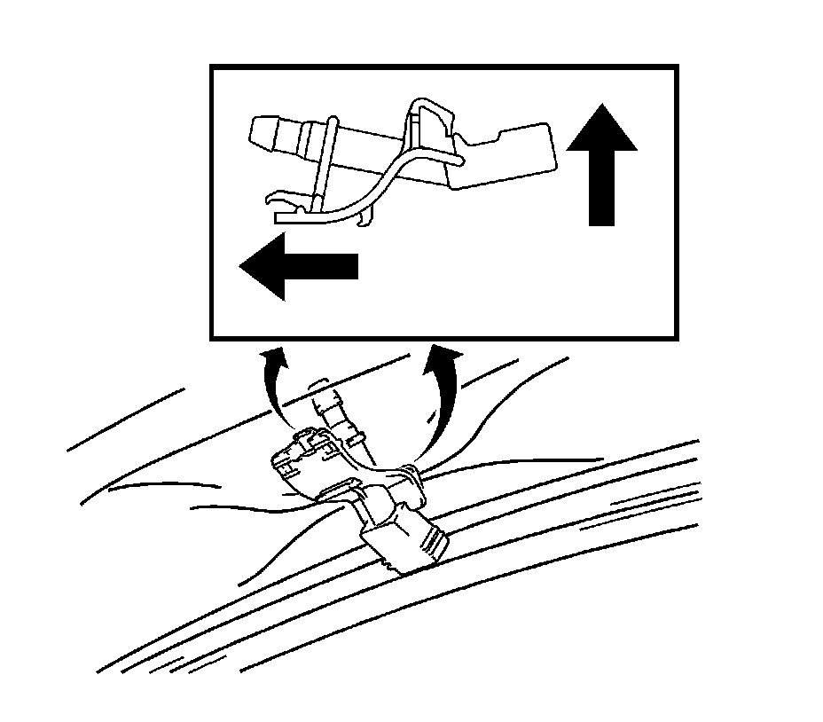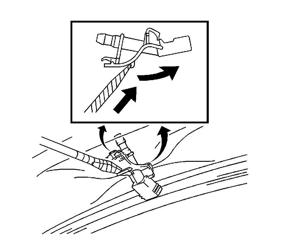 1. Using a taped flat-bladed tool, disengage the two retainers and separate the washer nozzle.