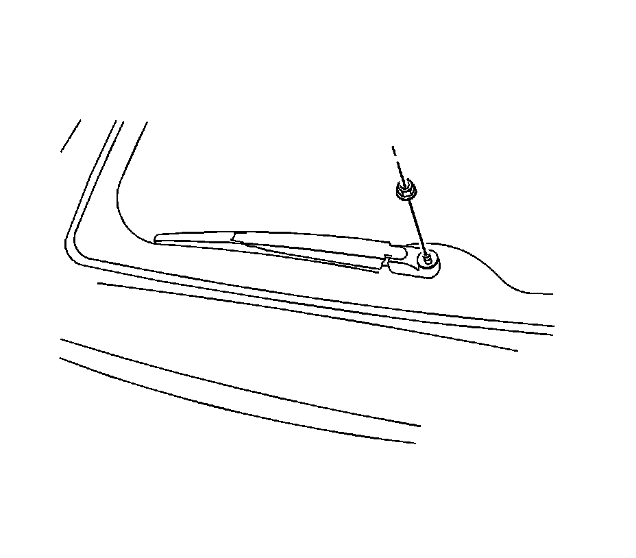 3. Remove the rear wiper blade from the rear wiper arm. Refer to Rear Window Wiper Blade Replacement (Rear Window Wiper Blade Replacement).